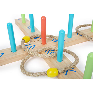 Wer beweist Treffsicherheit? Bei diesem Ringwurfspiel aus FSC® 100%-zertifiziertem Holz gilt es, die geflochtenen Ringe auf den neun unterschiedlich farbigen Pins zu platzieren, deren jeweilige Punktzahl auch ohne Zahlenkenntnisse ermittelt werden kann. Perfekt für jüngere Spieler, die noch keine Zahlen beherrschen! Das Spiel lässt sich kinderleicht auseinander- und zusammenbauen und ist im Tragebeutel auch unterwegs gut verstaut!