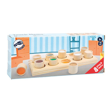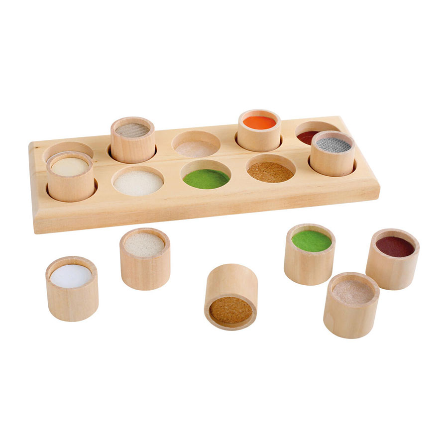 Farben erkennen und unterschiedliche Oberflächen ertasten - schon Kleinkinder können sich mit diesem Sinnesspiel gut beschäftigen und ganz beiläufig ihren Tastsinn verfeinern. Die Herausforderung bei diesem Fühl-Memo ist, gleiche Oberflächen anhand des Materials zu erfühlen und einander zuzuordnen.